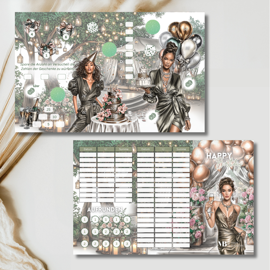 Spare mithilfe dieser 4-seitigen Klappkarte (Sparchallenge) spielerisch Geld für deinen nächsten Winterurlaub, beispielsweise Ski- oder Snowboard-Trip.